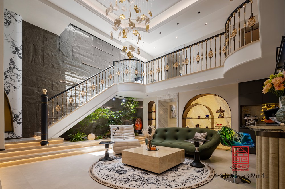 沙河自建別墅400平米現代簡約風格裝修-客廳