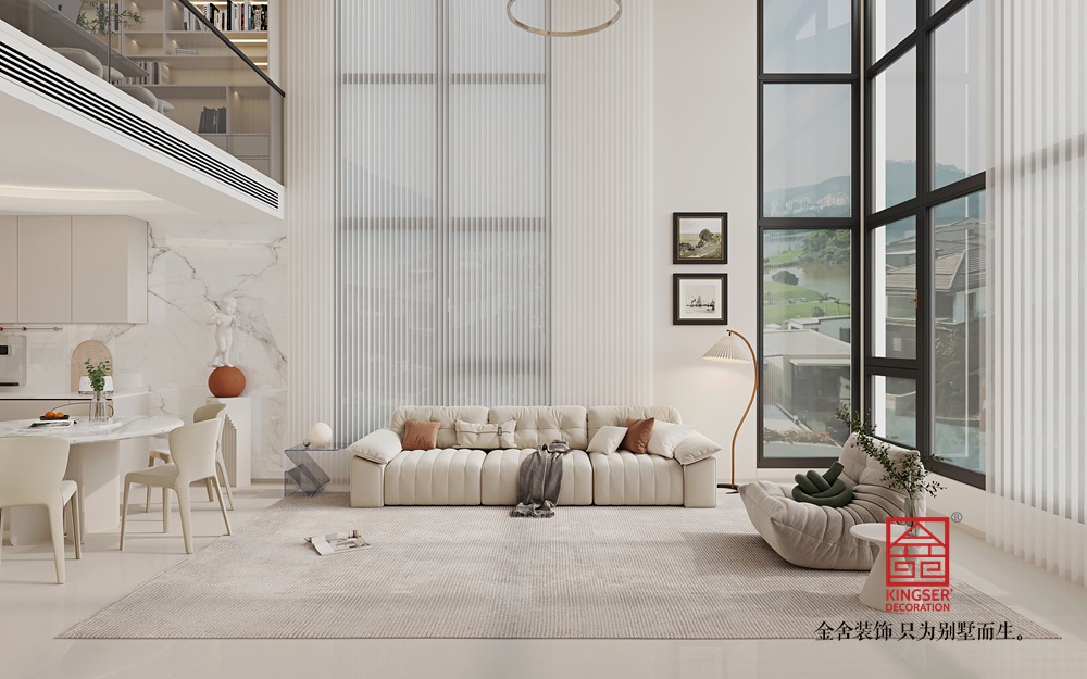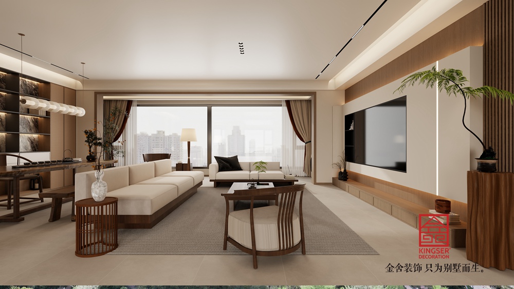 此案例為是石家莊金舍裝飾-東南智匯城別墅500平米現代風格裝修效果圖。在這個空間中,色彩和材質的運用秉承日本傳統美學中對自然形態的推崇,營造澄凈如洗的肅凈感。
