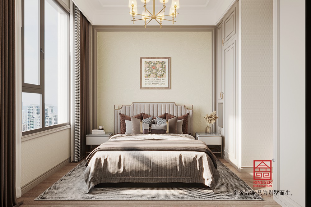 在設計過程中,摒棄了傳統美式可能存在的繁復與厚重,通過精簡線條、優化材質搭配、把控色彩層次,在保留美式風格舒適氛圍的同時,提升空間的時尚度與品質感,打造出既符合現代審美,又能滿足居者對高品質生活追求的居住空間,讓居者在自在愜意中感受輕奢生活的精致與美好。