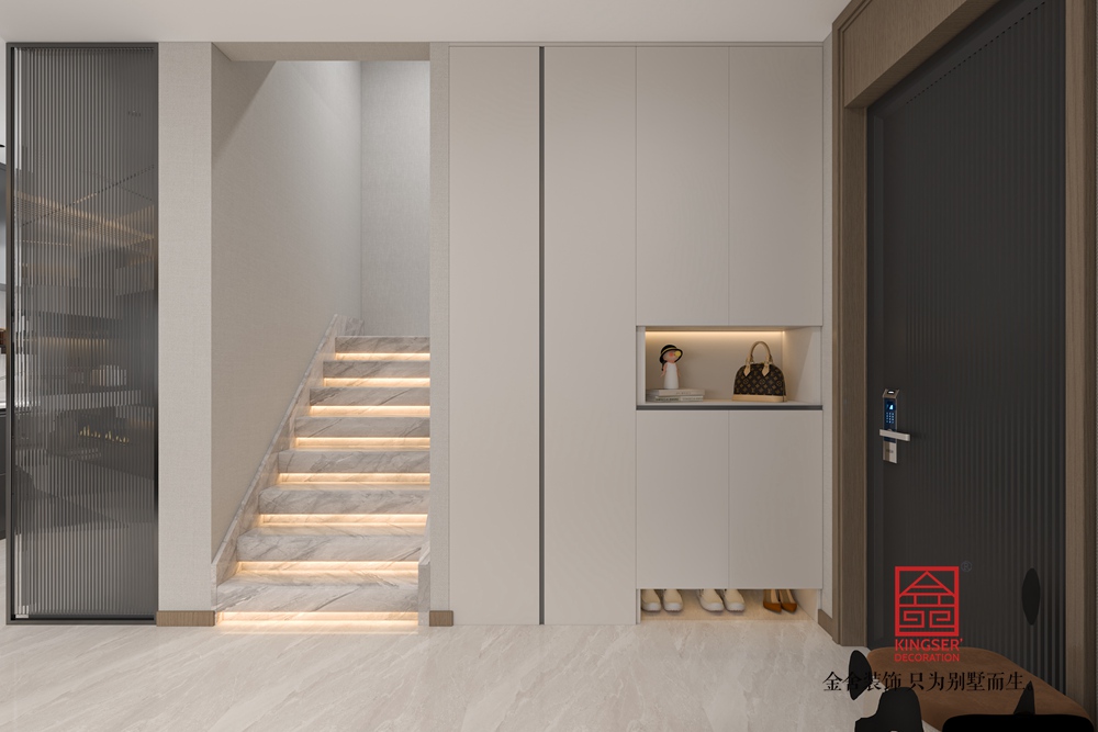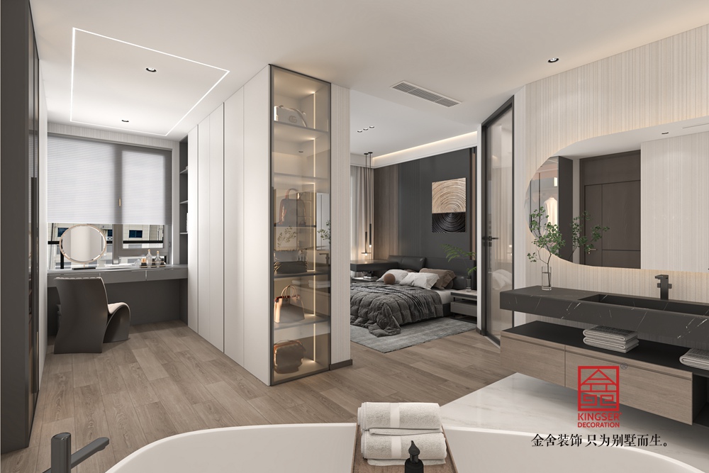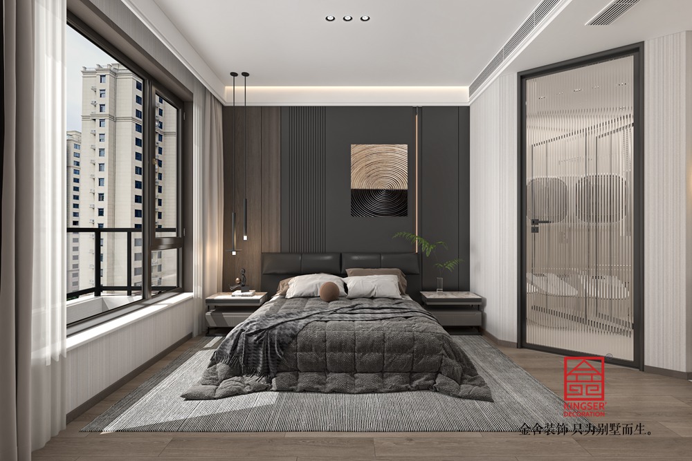 主色調以淺米色墻面為基底,搭配原木色地板與深灰色家具,形成低飽和度的和諧配色,既顯干凈清爽,又能適配多種軟裝風格。